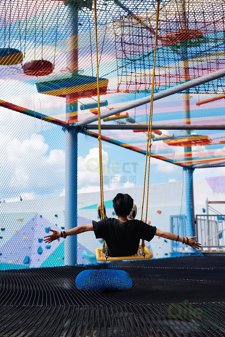 繩網采用進口高密度材質,即使多人同時攀爬也穩如磐石;網格間距經過人體工學測算,既保證安全性,又讓腳掌能精準踩到支撐點——這不是簡單的“繩網區”,而是用專業守護的“親子互動空間”。