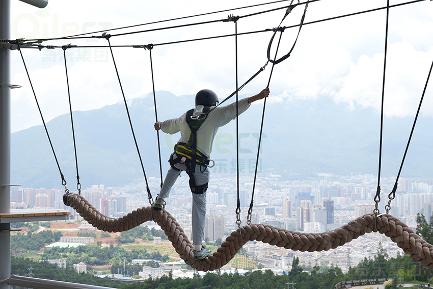 踩上去的瞬間,像踩在會呼吸的云朵上,身體會隨著腳步輕輕搖晃,卻始終穩穩托住重心。適合兒童和初次嘗試者在安全保護下培養勇氣。