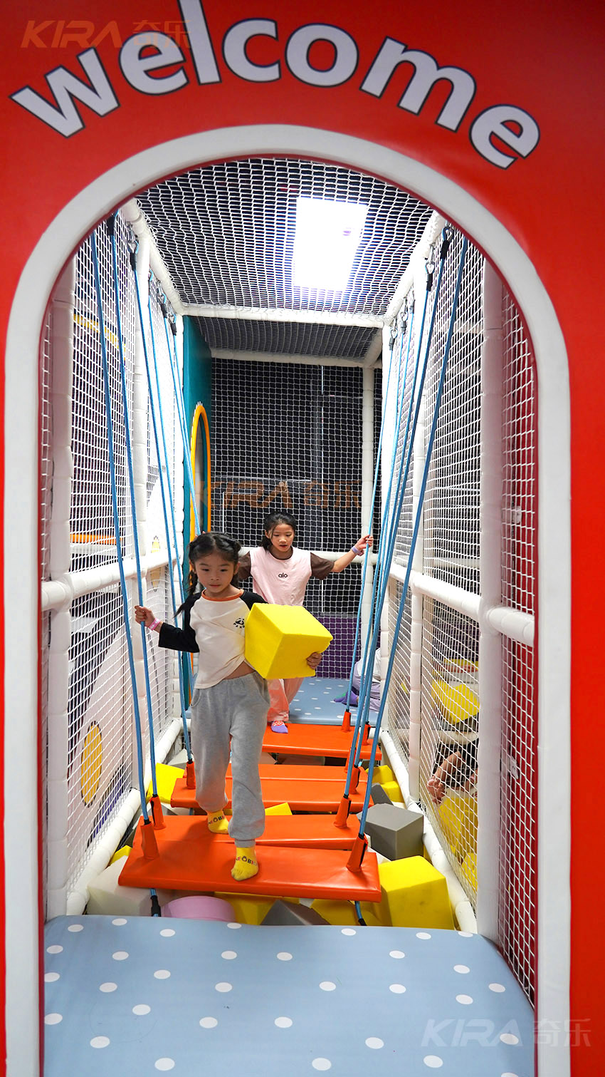 結(jié)構(gòu)穩(wěn)固,邊角全部采用軟包防護(hù),地面全部使用高密度緩沖地墊,全方位保護(hù)孩子免于跌落傷害,從源頭上杜絕安全隱患。