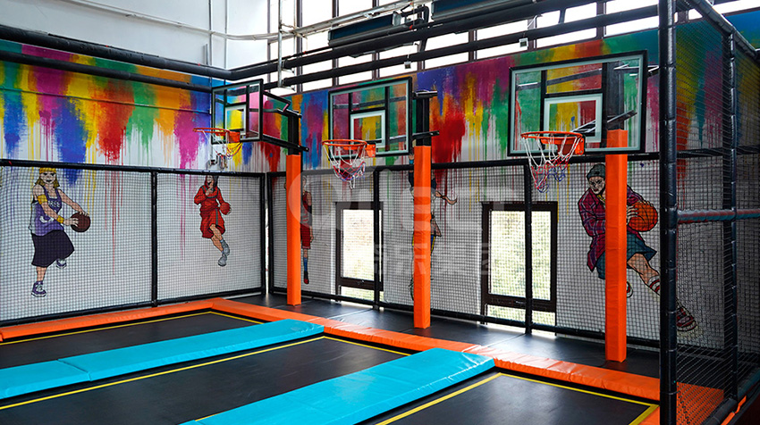 灌籃結(jié)合,使勁一蹦,灌籃絕對沒問題。下一個櫻木花道就是你!沒有身高阻礙,只看技術(shù),借助蹦床的彈力高高躍起,在空中將籃球砸進球框。。。。。。
