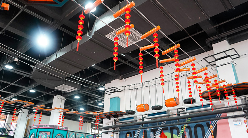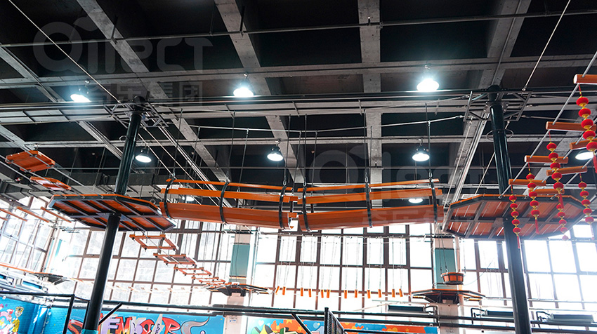玩膩了地面上的滑梯,沒關(guān)系,我們在空中也設(shè)計了游玩拓展步道,木桶、輪胎、搖擺橋、獨木橋、圓筒通道、“M”字吊橋等多個項目任你體驗,更有空中自行車項目,勇者來戰(zhàn)!