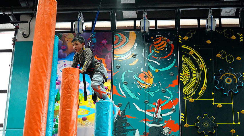 創(chuàng)意攀巖除了鍛鍊體能,能讓兒童在克服困難的過程中,提升自我的肯定,加強自信心;