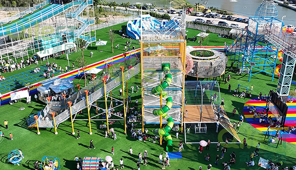 在北京溫榆河生態走廊的核心區域,一座由廣州奇樂游樂設備有限公司設計建造的「阿爾法戶外探險水晶塔」正以獨特的幾何美感重塑城市休閑版圖。這座總高度29.8米、占地1100平方米的立體探險設施,不僅是奇樂模塊化設計理念的集大成者,更通過軍工級安全體系與智能監測技術,為都市人群開辟了全新的戶外運動場景。