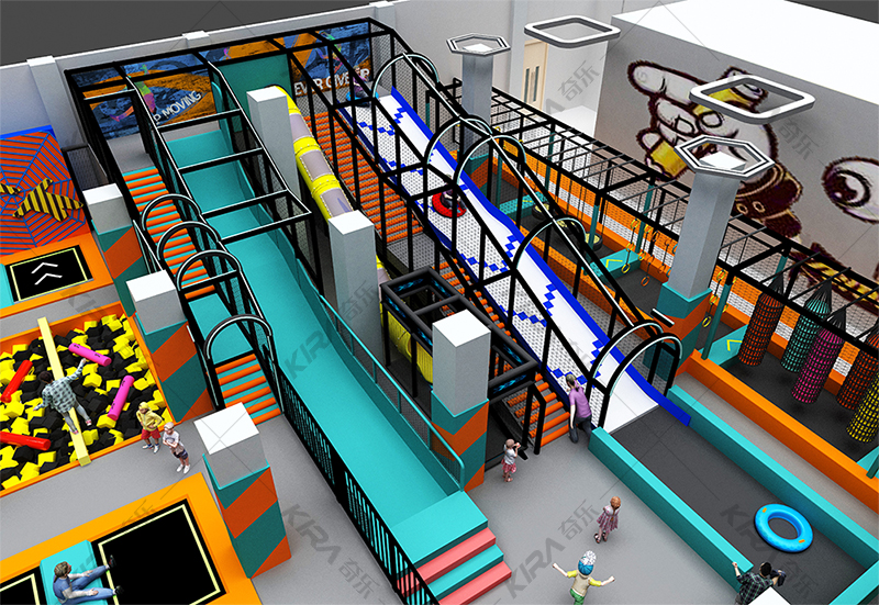 蹦床運動公園是奇樂室內游樂項目很重要業務之一,是奇樂專門打造的室內大型綜合娛樂項目,是運動與娛樂結合的室內樂園。樂園內以蹦床為主題,搭配這各種游樂項目,比如高空攀爬拓展、忍者拓、空中飛翔、鐳射對戰、VR游樂設備,超級瑪麗、蜘蛛塔等等游樂項目。我們奇樂已經做過很多大型的室內蹦床公園項目,其中比較出名的就有嗨馬樂動、樂酷空間、嗨湃游樂場等等。奇樂在2021年也做了很多項目,其中比較大型的室內蹦床公園項目做了哪些呢?