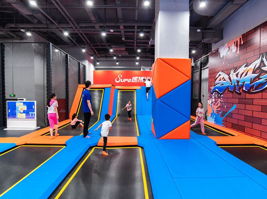 此外室內(nèi)蹦床館在裝修設(shè)計中安全保障始終是第一位的工作,作為特種游樂設(shè)施在建設(shè)之前必須層層驗(yàn)收確保沒有質(zhì)量問題才能投入營運(yùn)。場館的游樂體驗(yàn)必須是多樣性的,不僅是針對兒童,還要適合各種人群的需求以滿足大眾綜合消費(fèi)訴求。