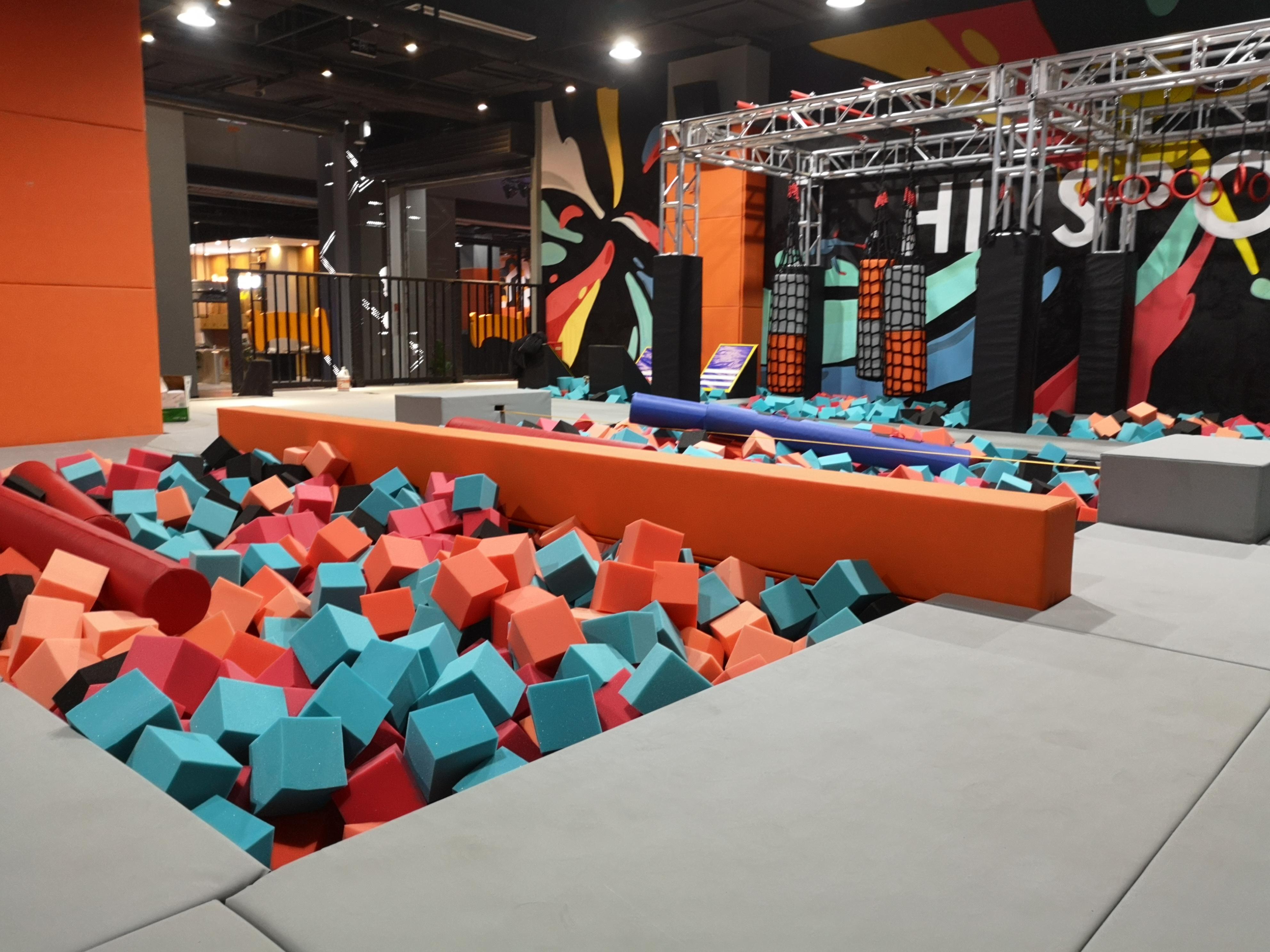 緊鄰淘氣堡,可設置2-4張專業蹦床(來自可靠的蹦床公園廠家)及一片互動投影地面。該區域能有效分流淘氣堡的人流,釋放兒童充沛精力。互動投影技術能實現地面游戲的快速更新,以極低的邊際成本保持內容新鮮感。