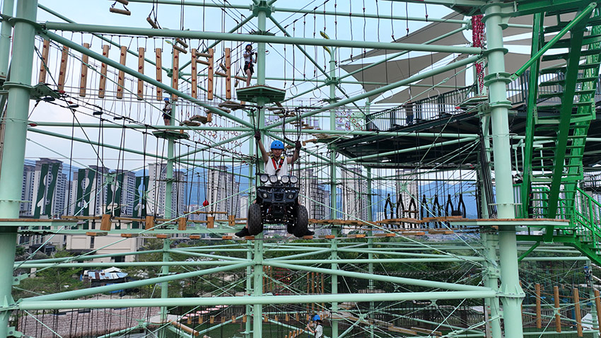 • 攀爬挑戰(zhàn)區(qū):依托鋼結(jié)構(gòu),設(shè)置了不同難度的攀巖點(diǎn)、繩網(wǎng)矩陣和空中步道,滿足從兒童到成人不同年齡層的探險(xiǎn)需求。