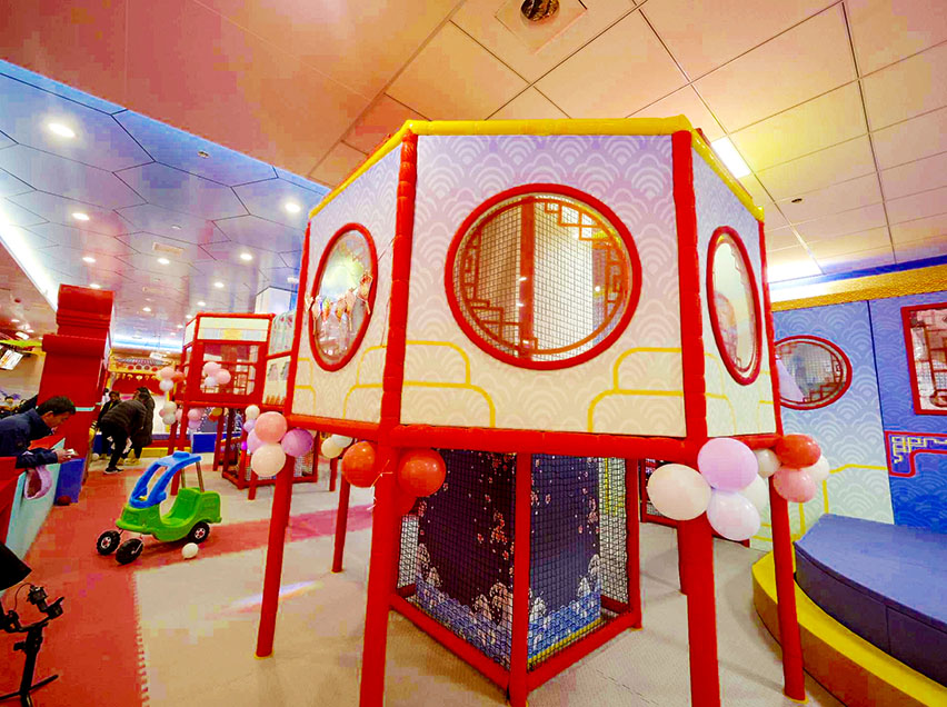 郯國古城游樂園以兒童游樂為中心,融入多種親子互動、少兒益智的優(yōu)質(zhì)項目,包括了滑梯、球池、蹦床、拓展、椰子樹、彈跳迷宮等項目,玩法豐富有助于兒童身心健康成長。國潮風(fēng)主題形象地將帶有濃郁傳統(tǒng)節(jié)日文化色彩的喜慶元素展現(xiàn)出來,從而增強(qiáng)了樂園文化屬性。真正將中華文化精粹植入樂園項目中,為游客打造一個傳承悠久歷史文明的古風(fēng)世界,使孩子們在玩樂中從小培養(yǎng)起對傳統(tǒng)文化的認(rèn)同與自豪感。