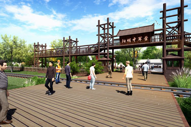陽明寨景區(qū)位于江西省崇義縣,總規(guī)劃面積6.2平方公里,本次陽明中軍營板塊設(shè)計面積為:33畝。陽明中軍營主要以軍事文化體驗(yàn)為主。場地以農(nóng)田和樹林為主,毗鄰河流,并且有一條小溪流途徑場地中央,已建公共衛(wèi)生間,地勢較為平坦,環(huán)境優(yōu)美。1、以軍事文化為主題,整體采用原生態(tài)設(shè)計元素