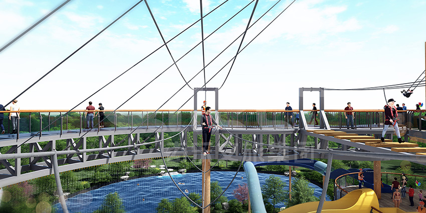 高層體驗區新增了活動平臺使得項目本身的載客量有了顯著的提升,在此基礎上增設了抱石攀巖、高空蹦極、英雄之旅等具有時尚潮流風格的項目為不同年齡段不同愛好的玩家提供了屬于自己的專屬舞臺,此外在項目底層還設有劇場及休閑區能夠更好地滿足游客玩樂之余的休閑放松需求。 IFA ISLAND包括多個不同種類的高空網紅項目,由點到面覆蓋到整個景區。以現代科技為游客打造綠色環保玩法豐富體驗感極強的戶外游樂項目,多種驚險刺激的挑戰項目為游客帶來感官與視覺角度的雙重體驗,是一款新潮時尚刺激好玩的景區綜合游樂項目。