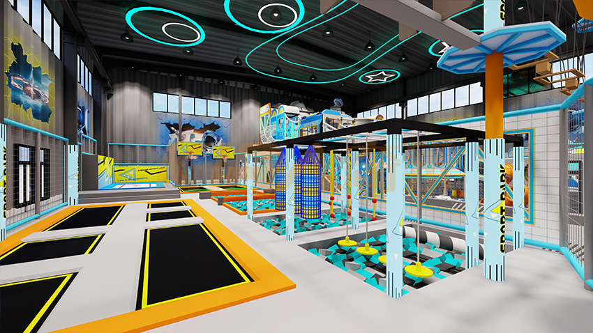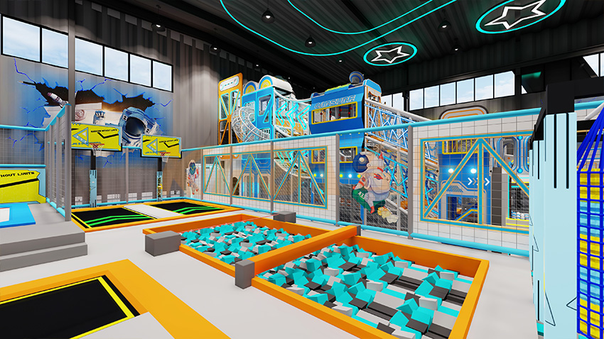 包含項目:自由蹦床、專業蹦床、蹦床灌籃、蜘蛛粘粘墻、海綿池對壘、彈跳迷宮、太空迷宮淘氣堡、凌空探險矩陣、彩虹繩網、創意攀巖、信仰之躍等(可根據實際場地大小定制)