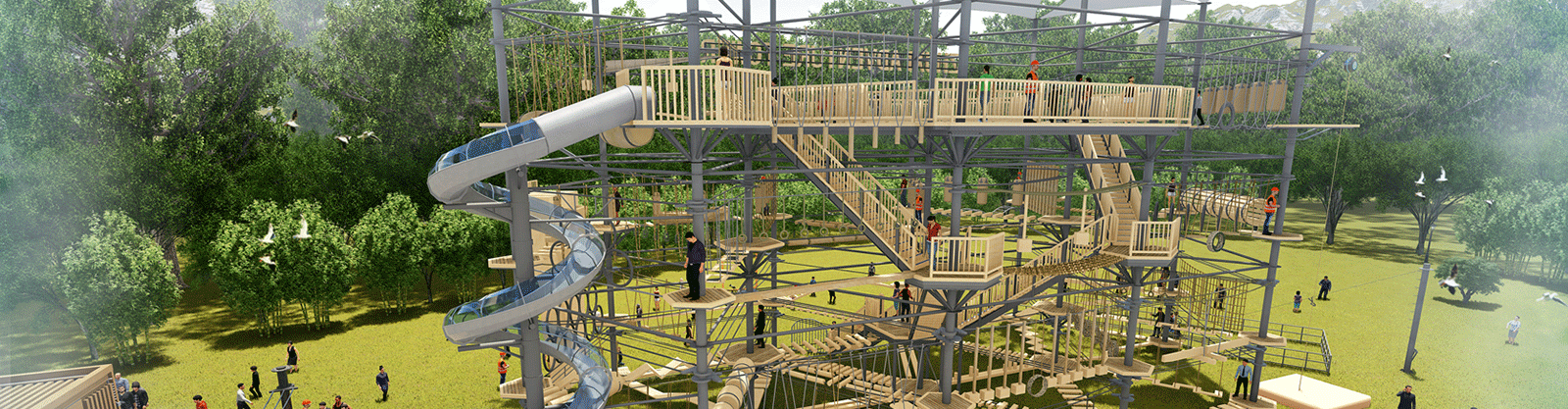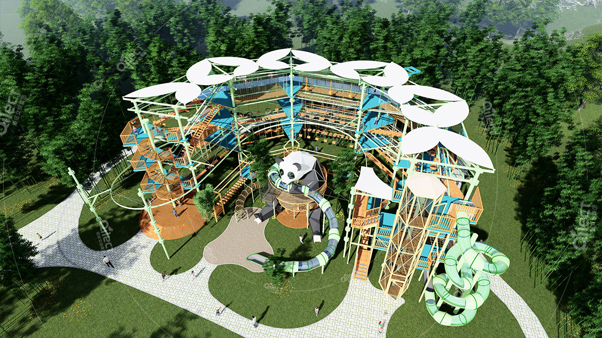 本項(xiàng)目適用于各種親子主題類的樂(lè)園,巧妙運(yùn)用“大灰熊”IP造型設(shè)計(jì),集拓展、探險(xiǎn)、滑道、飛索、蹦極、不銹鋼滑梯、攀巖、爬網(wǎng)等46種不同運(yùn)動(dòng)體驗(yàn)的文化主題項(xiàng)目,結(jié)合“大灰熊”IP形象,融入相關(guān)設(shè)計(jì)元素,打造差異化的網(wǎng)紅IP主題性運(yùn)動(dòng)拓展?fàn)I地綜合體。